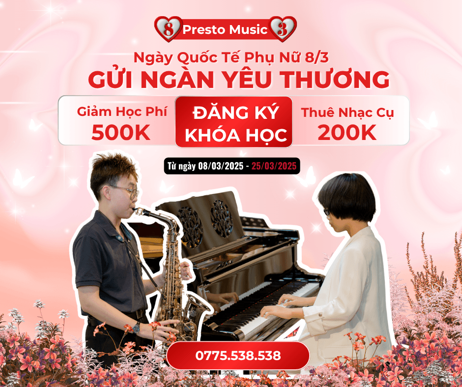 Trường âm nhạc Presto được thành lập trên nền tảng giáo dục âm nhạc chất lượng cao và mong muốn truyền cảm hứng âm nhạc cho mọi người, ở mọi lứa tuổi. trường âm nhạc presto của chúng tôi cung cấp một môi trường học tập toàn diện và hòa nhập, nơi học sinh được khuyến khích theo đuổi khát vọng âm nhạc của mình