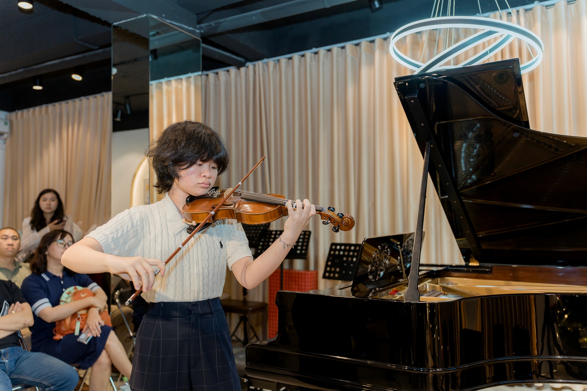 Violin là một trong những nhạc cụ cổ điển đẹp và giàu cảm xúc nhất, nổi bật với âm thanh mượt mà, sâu lắng, có khả năng chạm đến trái tim người nghe. Việc học Violin giúp người chơi phát triển khả năng nghe tinh tế, kiểm soát chuyển động chính xác và cảm âm vượt trội. Không chỉ là công cụ thể hiện cảm xúc cá nhân, Violin còn rèn luyện sự kiên nhẫn, tập trung và tinh thần kỷ luật. Dù bạn yêu thích nhạc cổ điển, nhạc phim, hay muốn thử sức với các bản nhạc hiện đại, Violin đều có thể truyền tải trọn vẹn cảm xúc và chiều sâu nghệ thuật trong từng giai điệu.