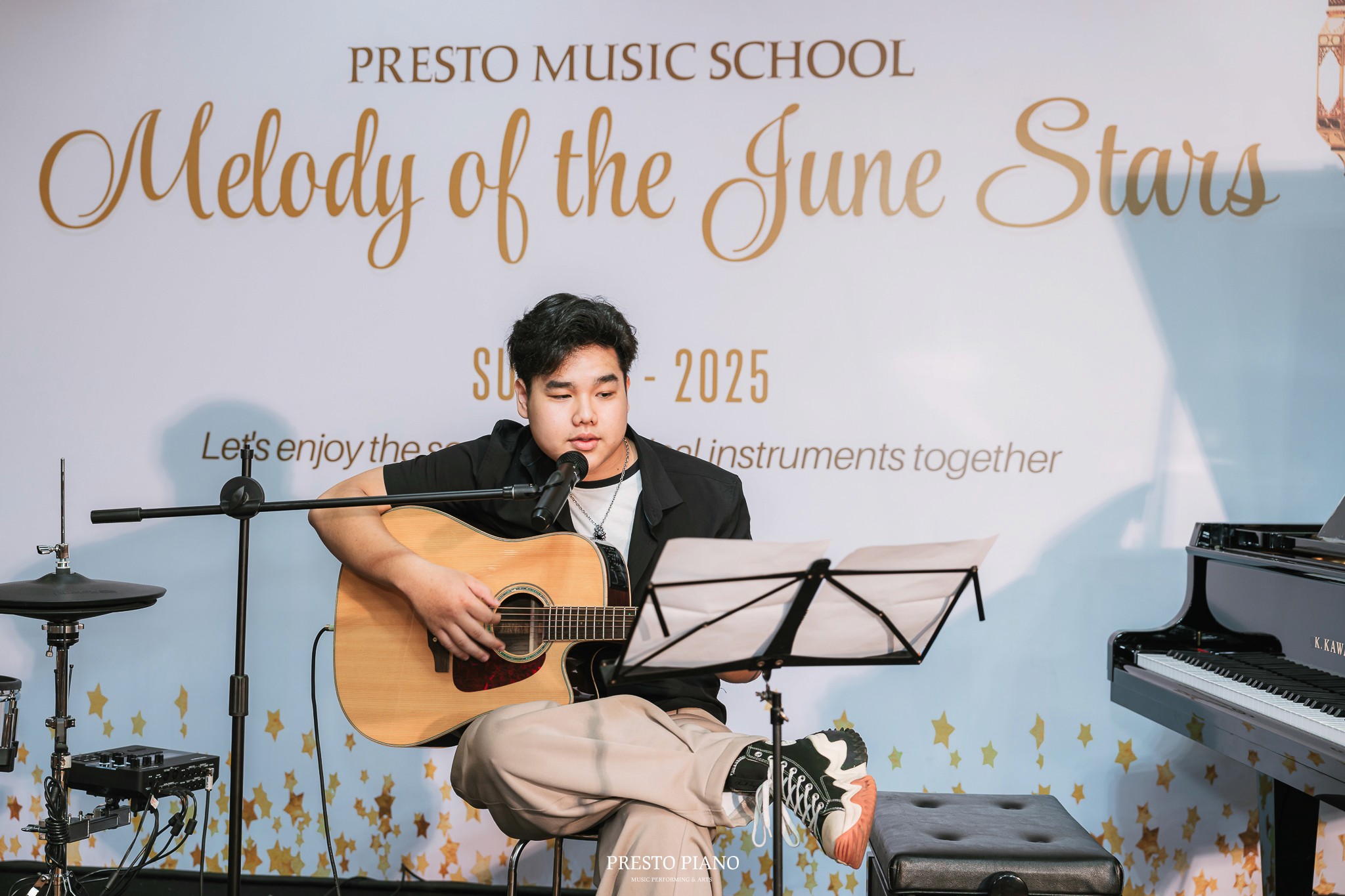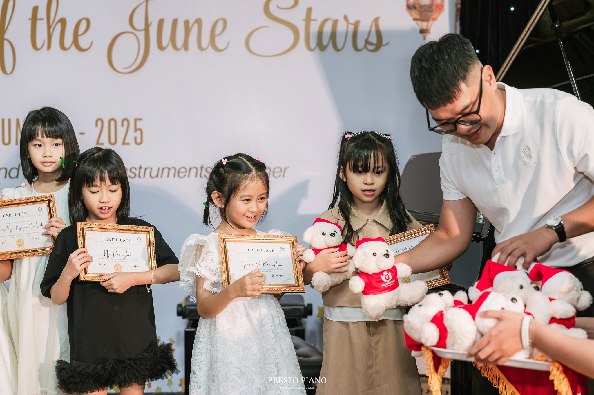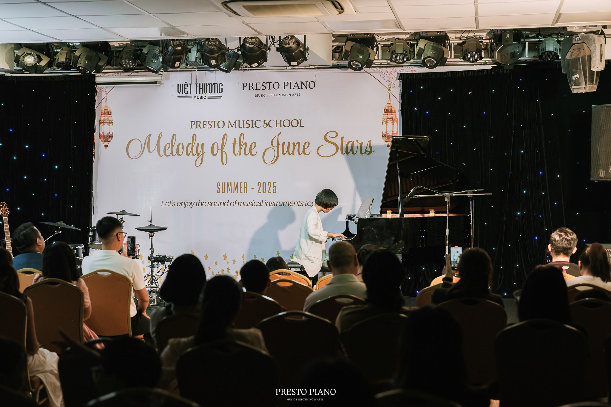 Với chủ đề “Melody of the June Stars”, buổi hòa nhạc không chỉ là dịp để các học viên Presto Music School thể hiện thành quả học tập, mà còn là sân chơi nghệ thuật giúp các em rèn luyện bản lĩnh biểu diễn, sự tự tin và niềm đam mê âm nhạc.